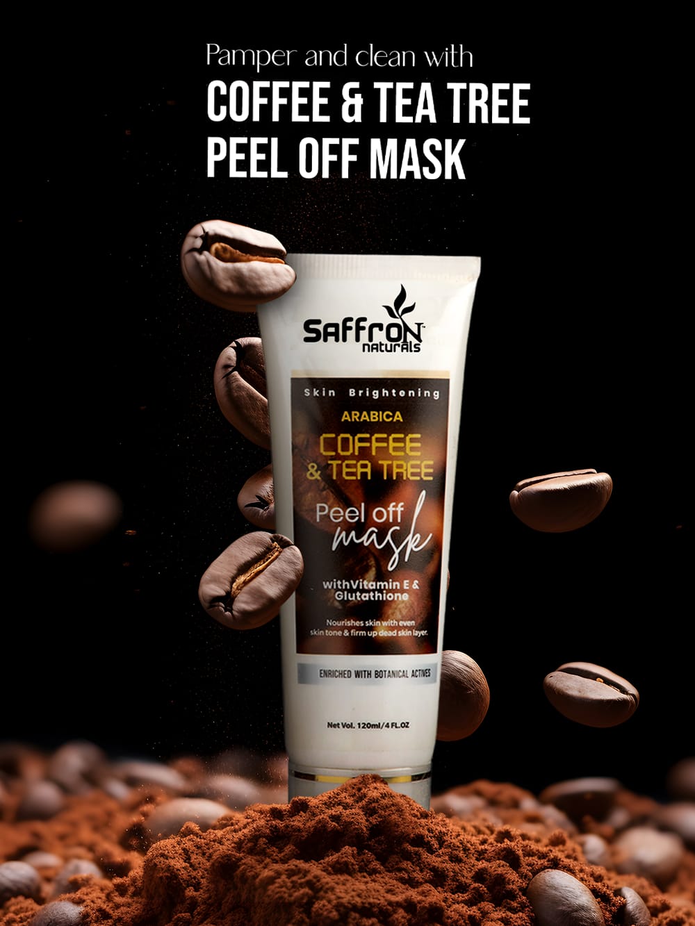 - Ethical Beauty : Saffron Naturals is committed to cruelty-free practices and uses natural ingredients for a gentle, effective skincare experience.Transform your skincare routine with Saffron Naturals' Coffee & Tea Tree Peel Off Mask, and enjoy a revitalizing treatment that enhances your natural glow and refreshes your skin.