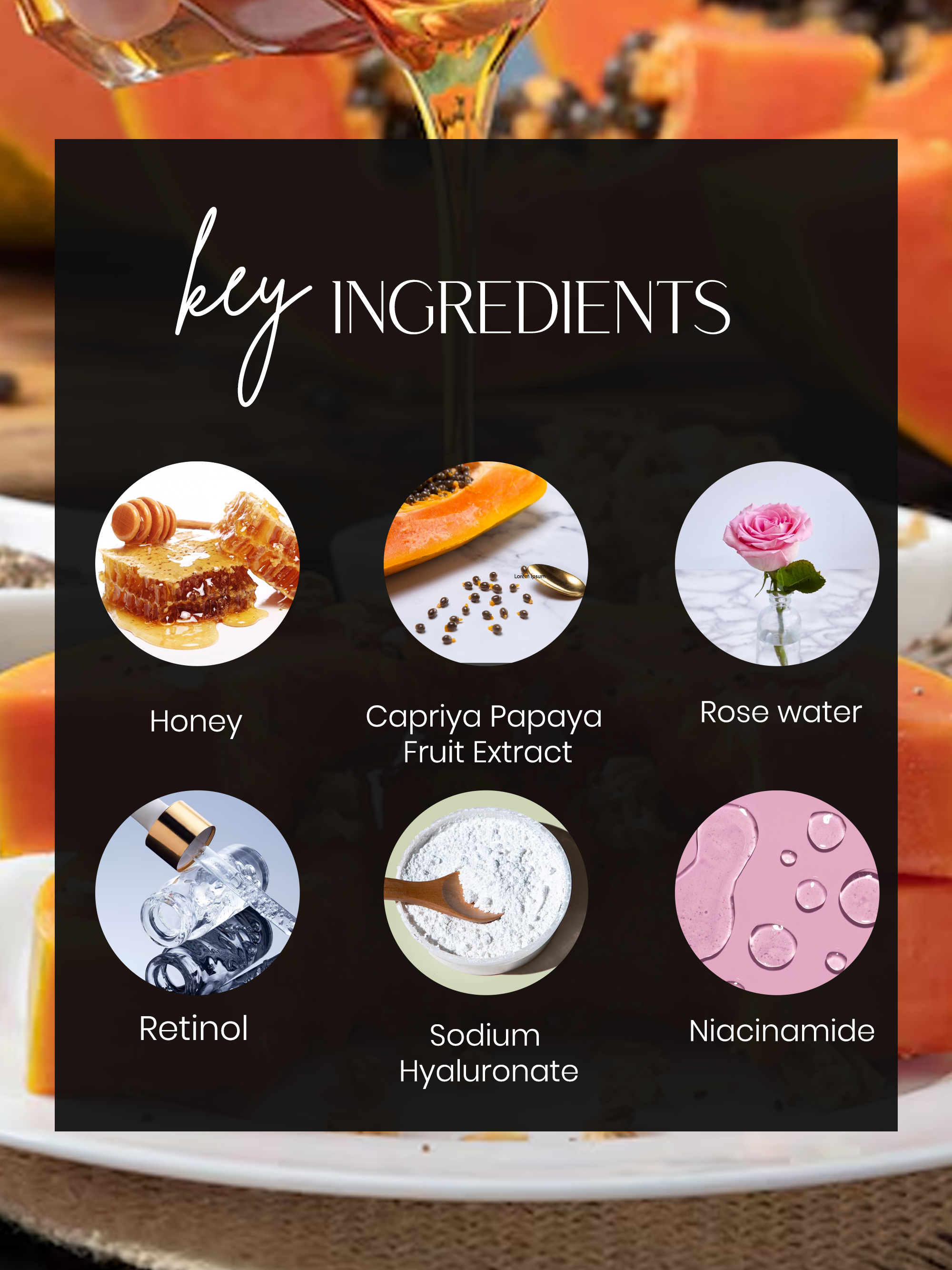 ₹35.00- Brightening and Lightening : Combines honey, papaya, and retinol for a powerful skin-lightening and illuminating effect.