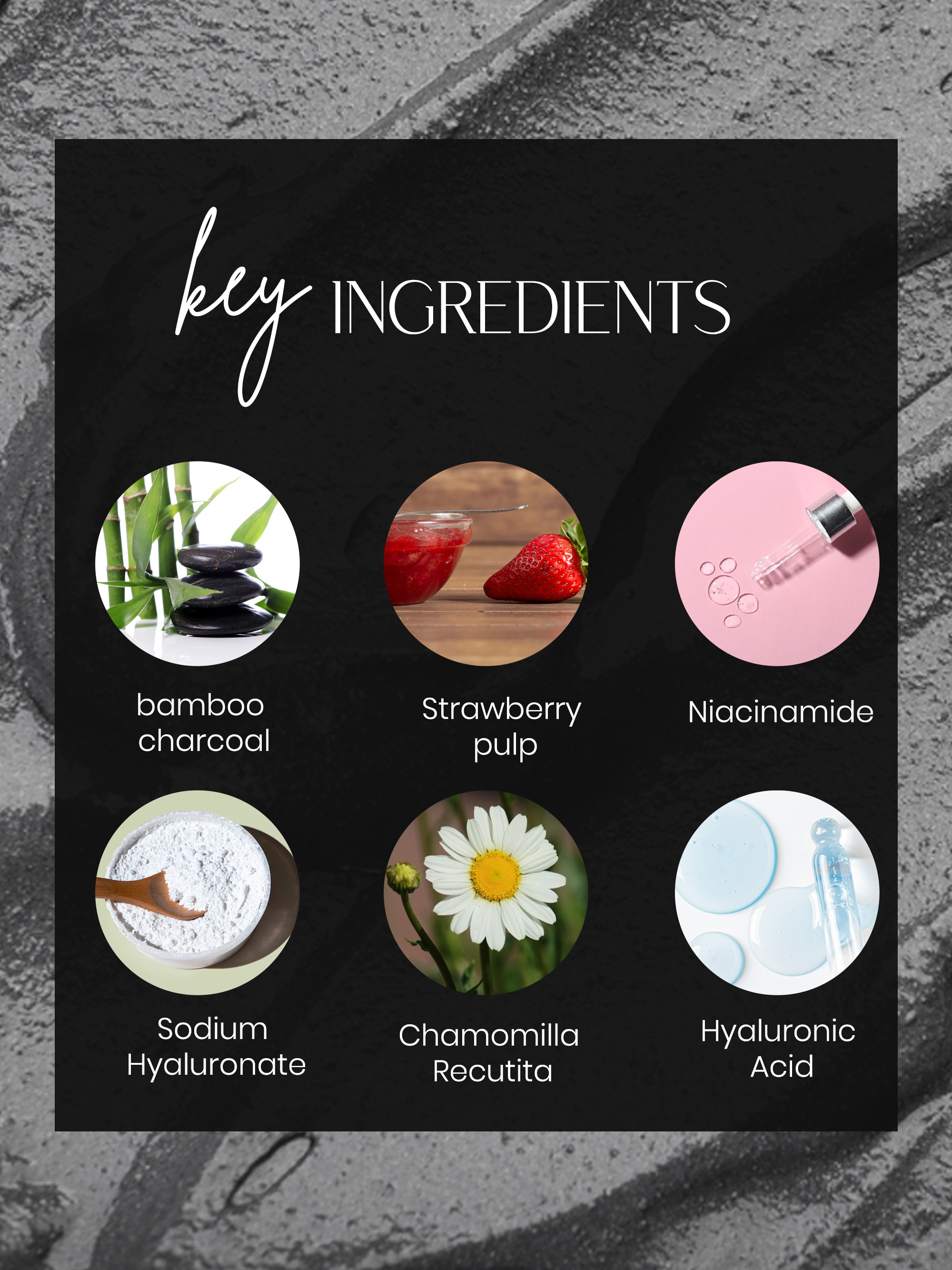 ₹35.00- Deep Cleanse and Glow : Combines purifying charcoal with brightening strawberry for a clear, radiant complexion.