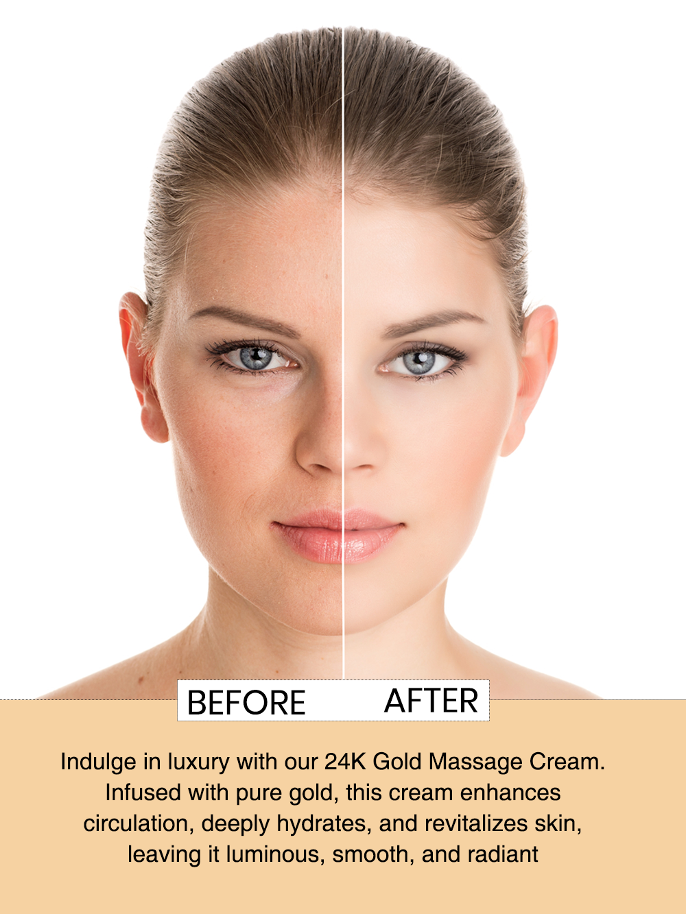 - Radiant Glow : 24K gold imparts a luminous, radiant finish to your skin, enhancing its natural glow and vitality.