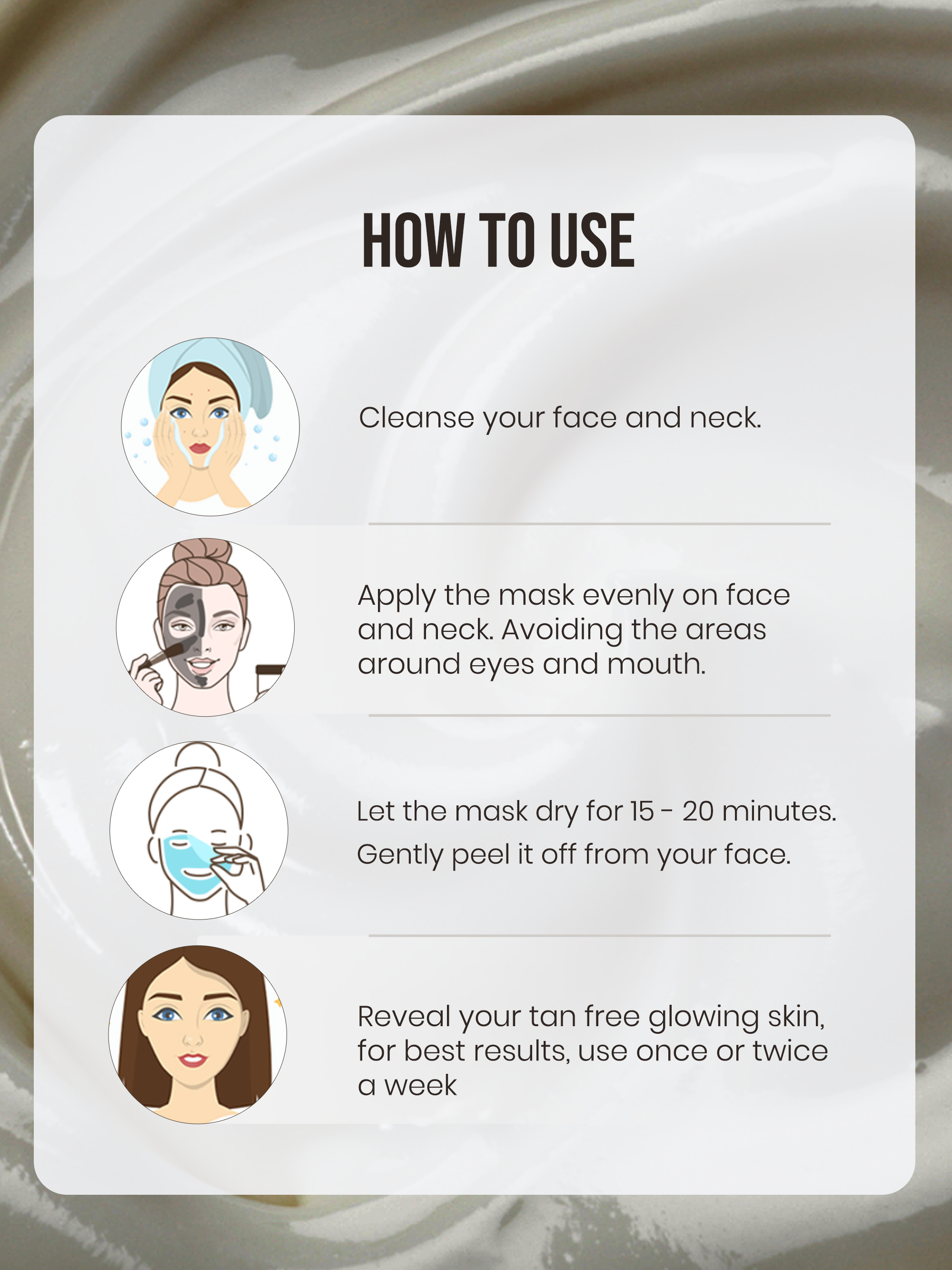 - Apply an even layer of the mask to your face, avoiding the eye area and hairline.